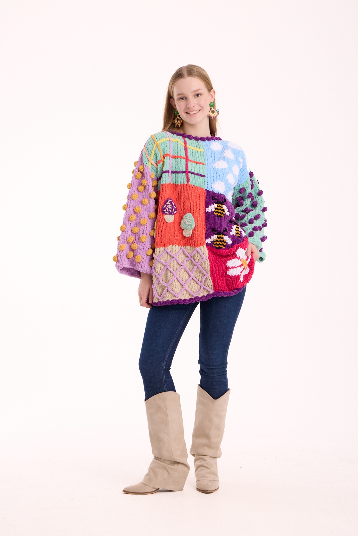 El örgüsü patchwork şapka, üst kalite kadife iplerle örülmüştür. Hem örgü, hem tığ işi teknikleri kullanılan benzersiz bir tasarımdır. Kış günlerinde kendinizi sıcacık hissedecek ve tüm bakışları üzerinize çekeceksiniz. Ürün el yapımı olduğu için teslim süresi 1-2 haftadır. Sadece kuru temizleme yapılmalıdır.